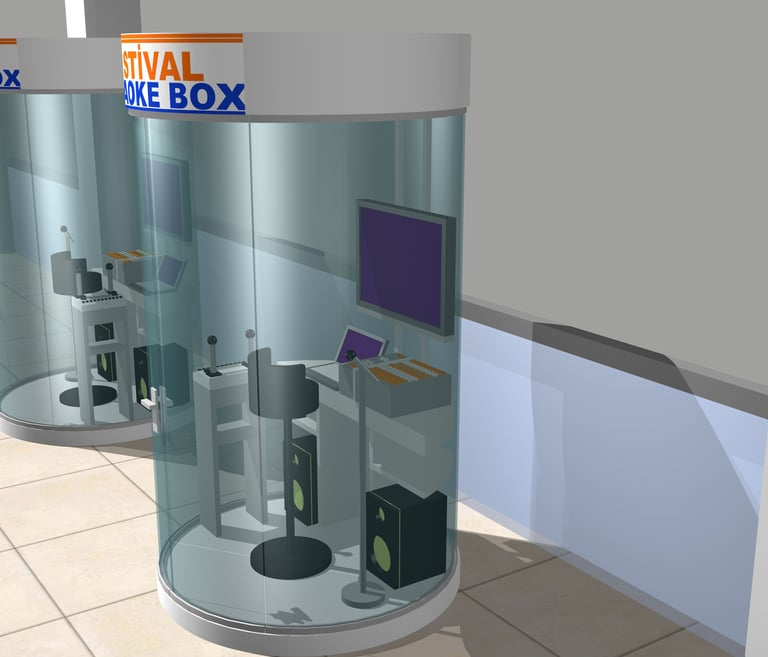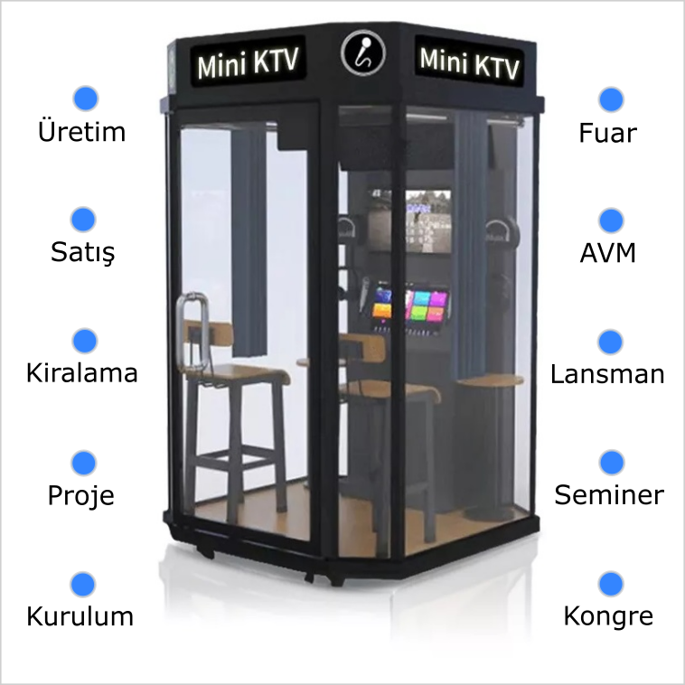 Karaoke booth avm, havaalanı, okul kampüsü gibi çeşitli alanlarda yapılacak organizasyonlarda kurulabilmektedir.