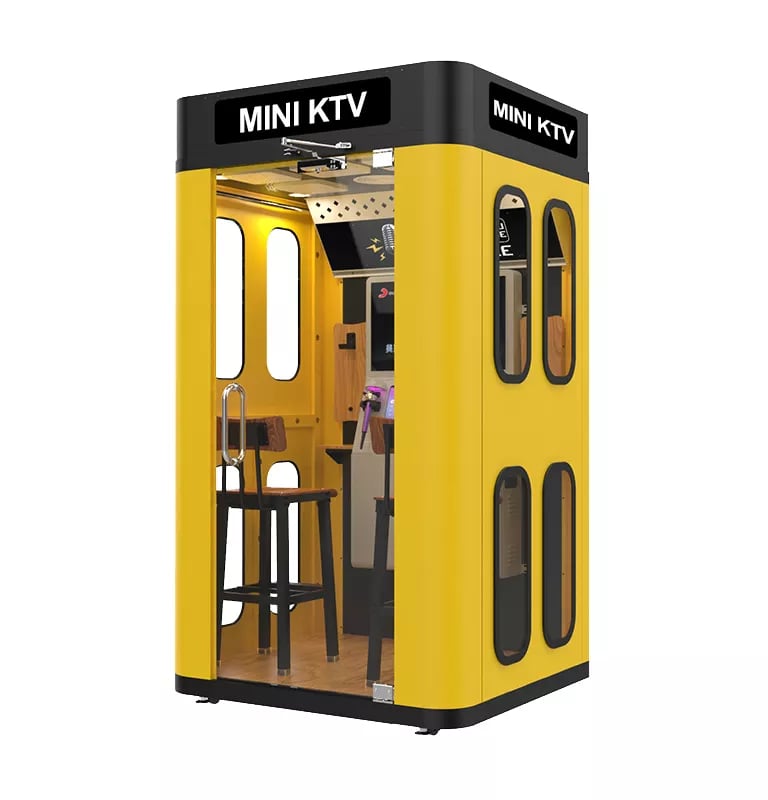 Karaoke booth portatif müzik stüdyoları içinde karaoke makinesi, mikrofon ve ekran vardır.