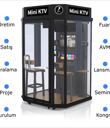 3.3. Eğitim ve Kurumsal Etkinlikler Karaoke booth'lar, AVM, eğitim kurumları ve şirketlerde kullanılabilir. Motivasyon artırıcı ve sosyal etkinlikler için kullanılabilir. Öğrenciler veya çalışanlar, takım çalışması ve eğlenceyi bir arada deneyimleyebilirler.